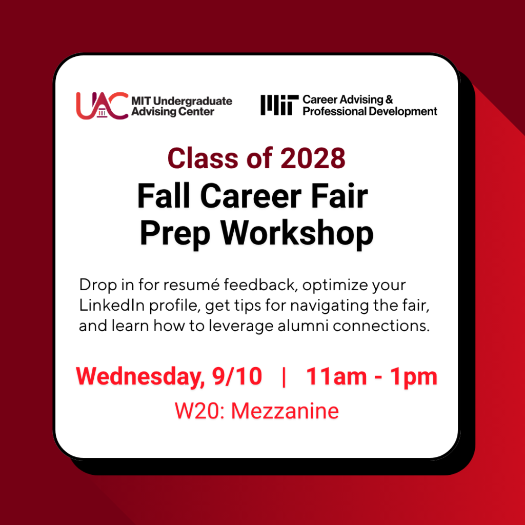 Class of ’28: Drop by our Fall Career Fair Prep for 1:1 conversations with advisors for: